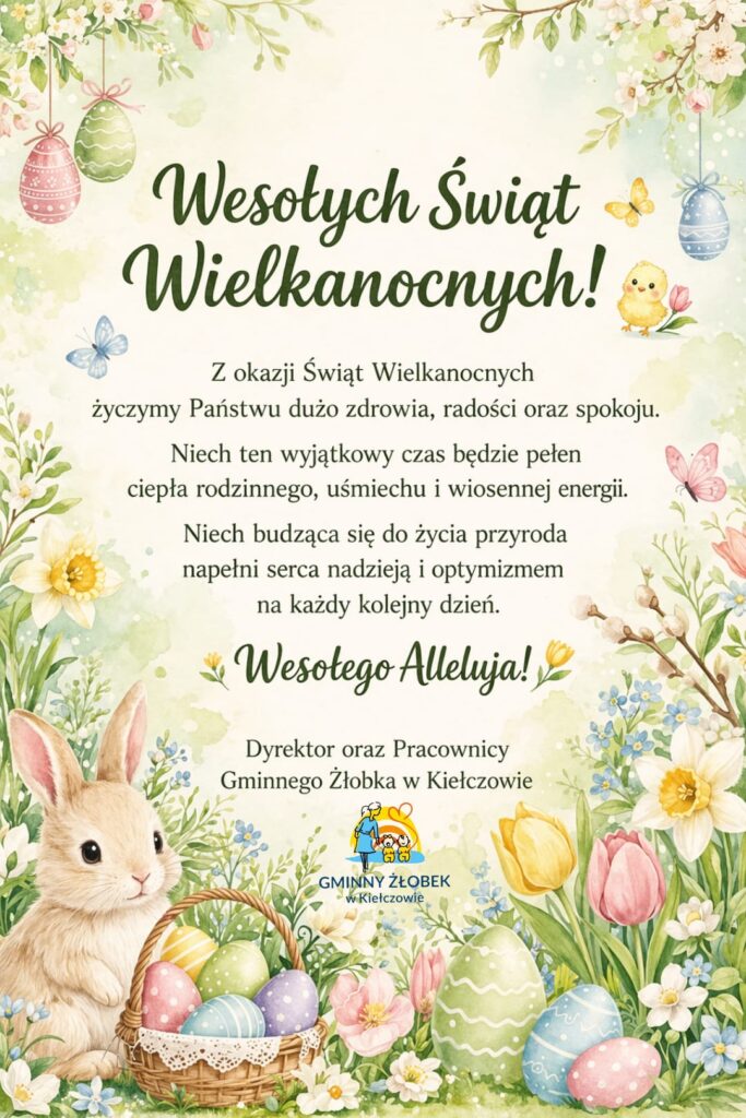 Z okazji Świąt Wielkanocy składam najlepsze życzenia. Niech ten szczególny okres będzie czasem zadumy, wyciszenia, wypoczynku i prawdziwej radości.Już za chwilę przygotowania koszyczka wielkanocnego i uroczyste świętowanie Zmartwychwstania Pańskiego. Życzę, aby był to czas spotkań w rodzinnym gronie, wdzięczności za to mamy i otwarcia się na dobro.